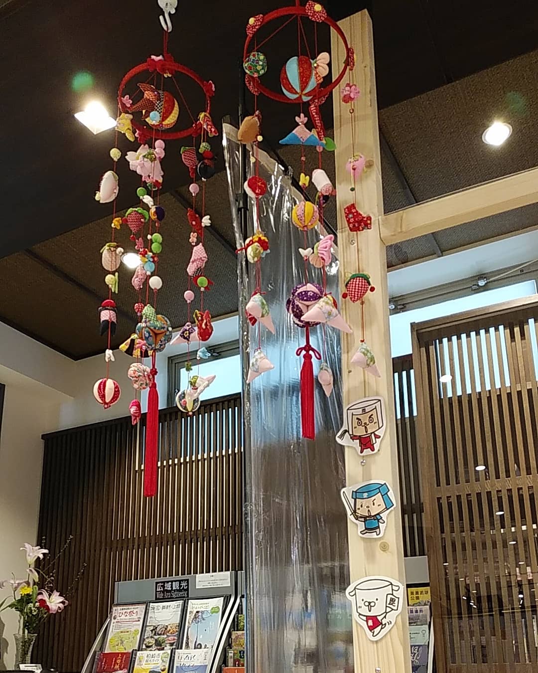 いつもなら新幹線改札口横のスペースに展示されますが、今年は展示されず、観光案内所内に吊し雛が飾られています。 段飾りのような豪華さはありませんが、綺麗な可愛い吊し雛でした。