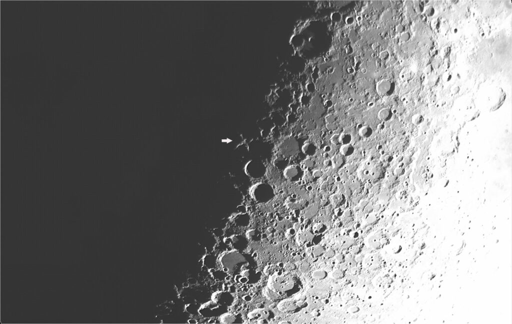 上弦の頃、月面の欠け際を望遠鏡で観察するとクレーターの縁や山の高い部分が太陽の光を受けてX(エックス)模様が浮かび上がって見えることがあります。このエックス形状がよく見えるのは今年は6回あります(通常は年数回程度)2月19日、4月19日、6月17日、8月15日、10月13日、12月11日でX字形に見えるのは一時間ほどです。その一回目のチャンスを捉えることができました。私こと3月末まで休館中ですが上越清里星のふるさと館のスタッフの秋山誠と申します。画像は自宅庭で望遠鏡を使い撮影しました。