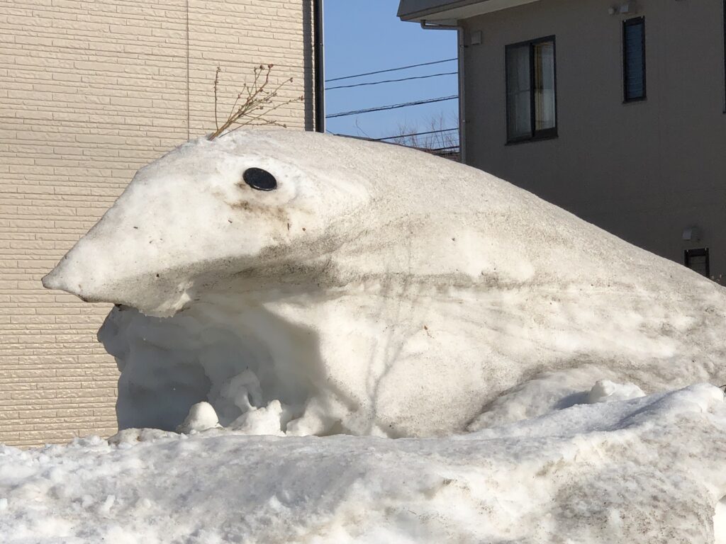 上越教育大学近くの住宅地に、怪獣(使徒)が出現???。前から見ると、世界一ブサイクな魚(ブロブフィッシュ)にも似ているような・・・。