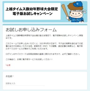 【上越タイムス旗幼年野球大会限定】電子版お試しキャンペーン実施中!