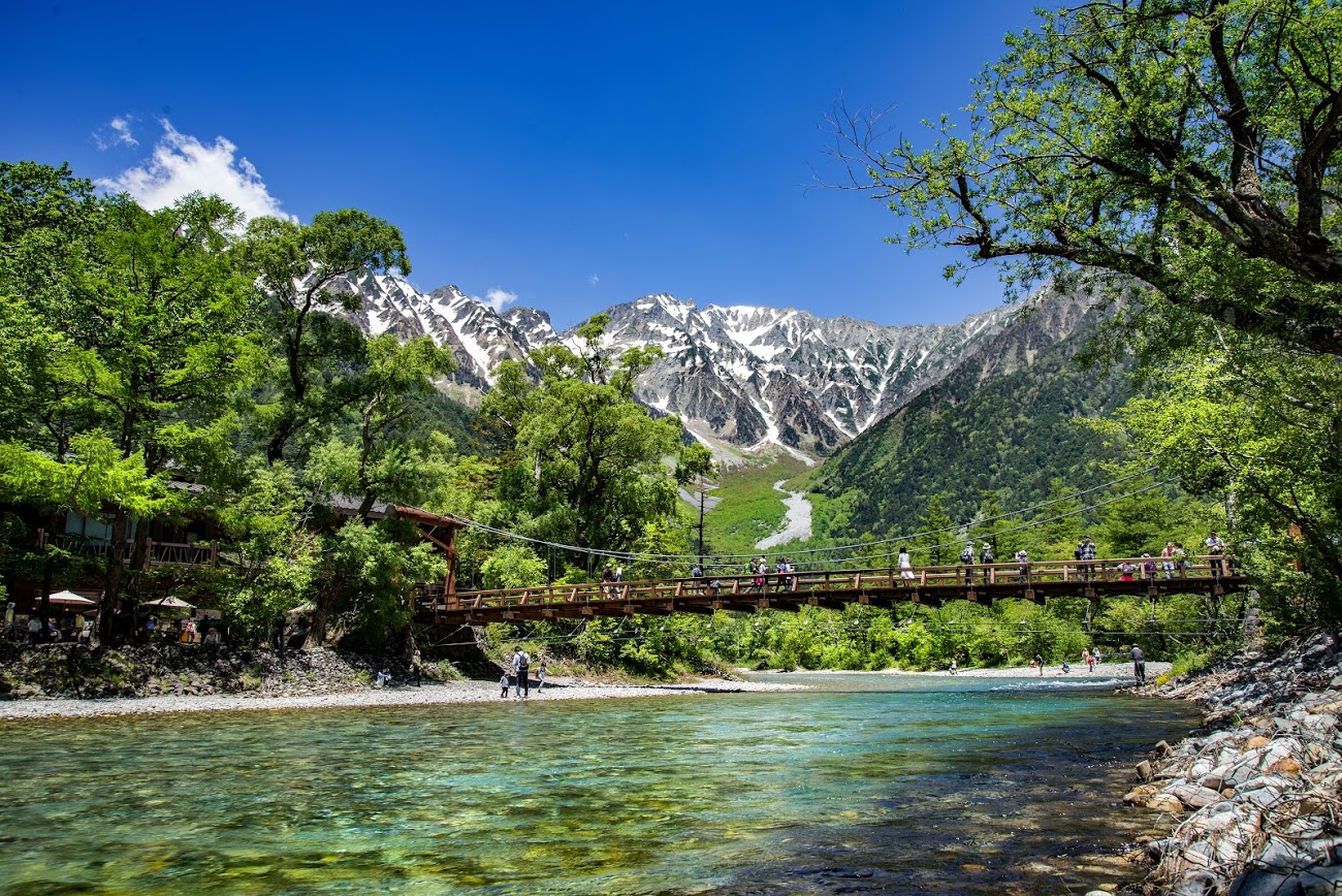 その後、清らかな梓川に架かる河童橋から望む山々の雄姿、大正池、徳沢など山と緑と水の風景が織り成す上高地を約2時間自由散策します。