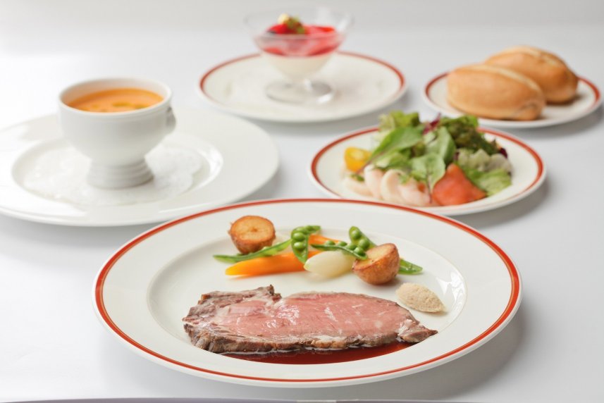 バスの座席は乗車定員を減らして運行、車内には手指の消毒液の設置、車内の換気と消毒の実施、乗車前に非接触体温計による検温の実施、各自マスクをお持ちいただき旅行中はマスク着用のお願い、食事会場ではグループごとに席の間隔を広くご用意いたします。上高地帝国ホテルでは、伝統的フレンチ特製ローストビーフ付きのランチを堪能します。
