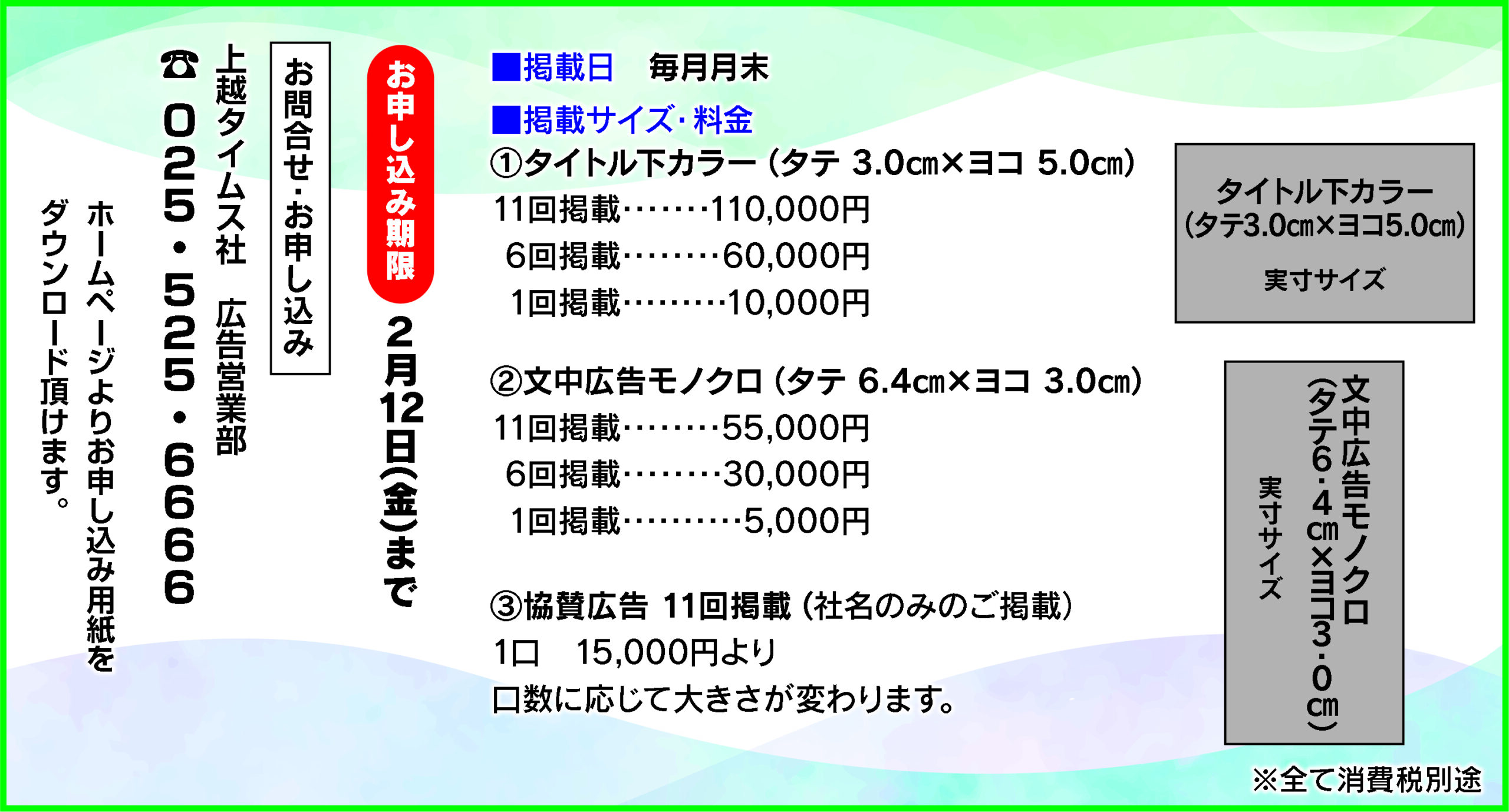 月末企画「いきもの上越図鑑」協賛広告のご案内